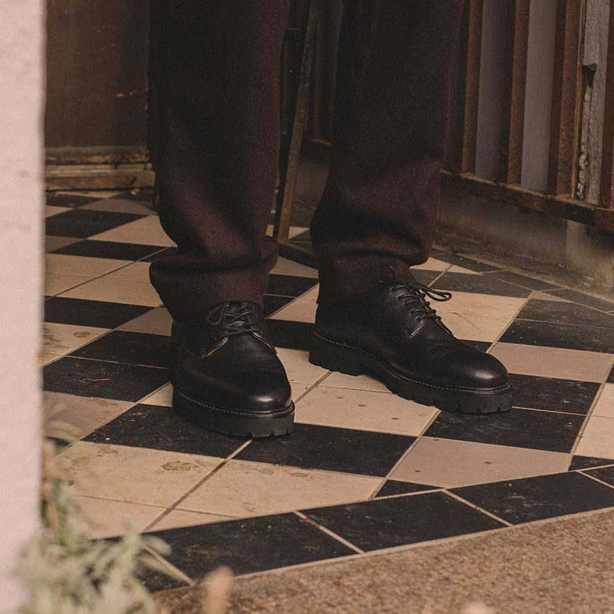 Lightweight Derby Shoe | Black Grained Leather