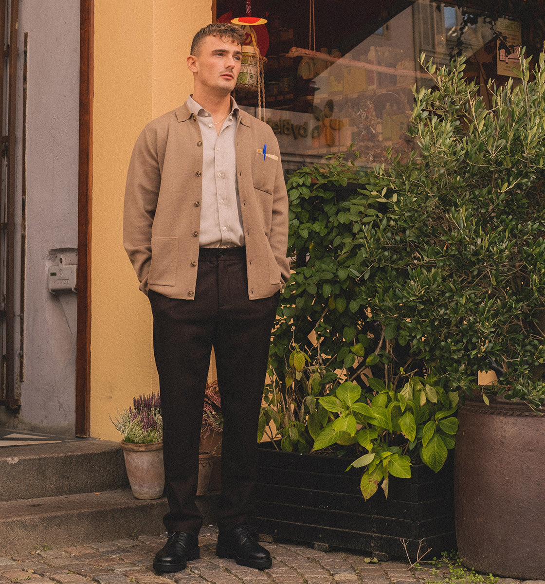 Overskjorten er en go-to når vejret ikke helt kan gøre op med sig selv, hvilken årstid det er. Den fungerer som en praktisk letvægtsjakke eller som et isolerende lag under en frakke. Du kan have den åbenstående, når det er varmt, eller knappe den op, når det er koldt. Den klassiske overskjorte blev oprindelige lavet i en kraftig bomuldskvalitet, men vi har udviklet vores i uld for at skabe et mere afslappet udtryk, der giver mulighed for at sammensætte mange forskellige looks. Det kunne være med en basic tee, en rullekrave eller som her, med en lækker tencel skjorte, der signalerer at man har tænkt sig om uden at det bliver for overdressed.