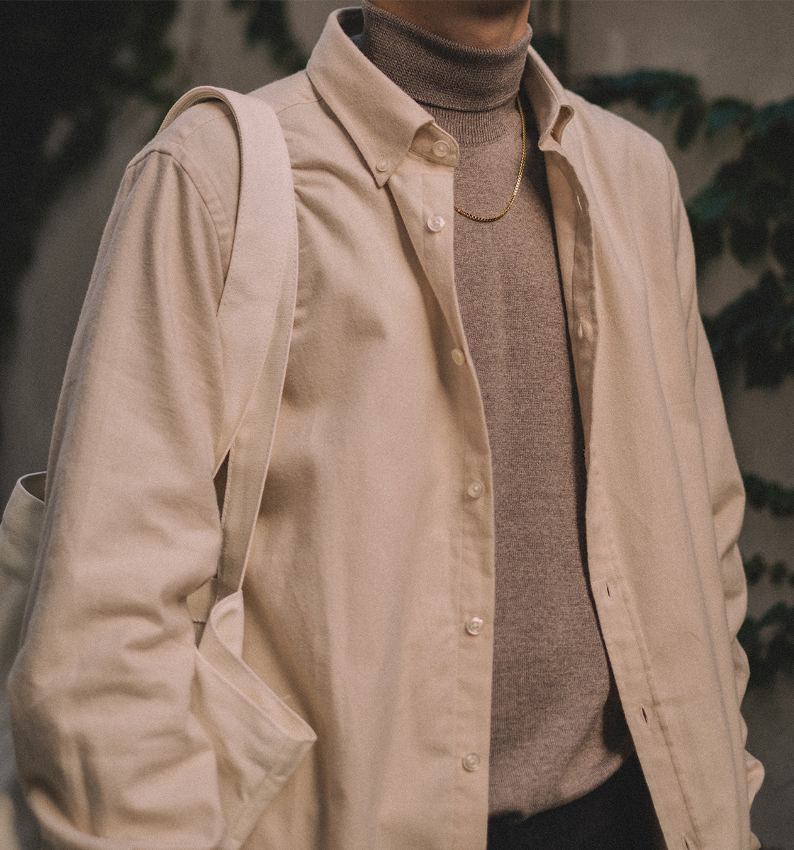 Efter at have nået sit højdepunkt i 1970'erne faldt beige og brun helt i unåde. Men som med meget mode, så kommer tendenser tilbage igen - og med tanker til playboy-look’et fra 1970'erne, kan du nemt brug en rullekrave under skjorten som et alternativ til en t-shirt. Det giver et mere ‘dresset’ look og så er det samtidig mere praktisk i de kolde måneder. Hvis du vil tilføje lidt flair til dit outfit, kan du tage en kæde uden på rullekraven.