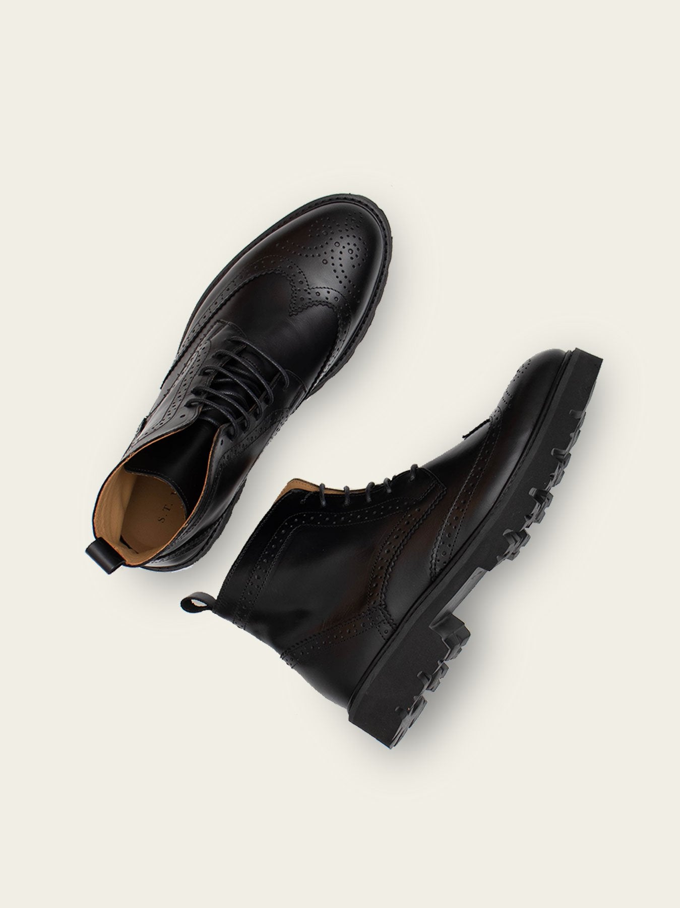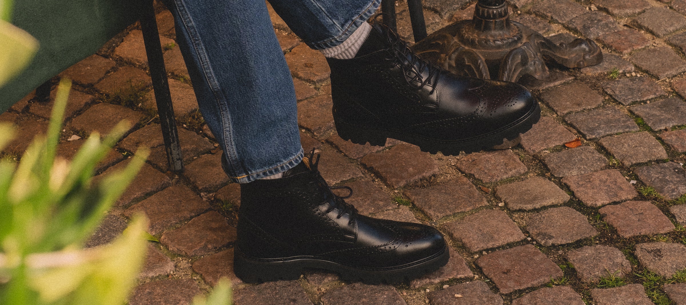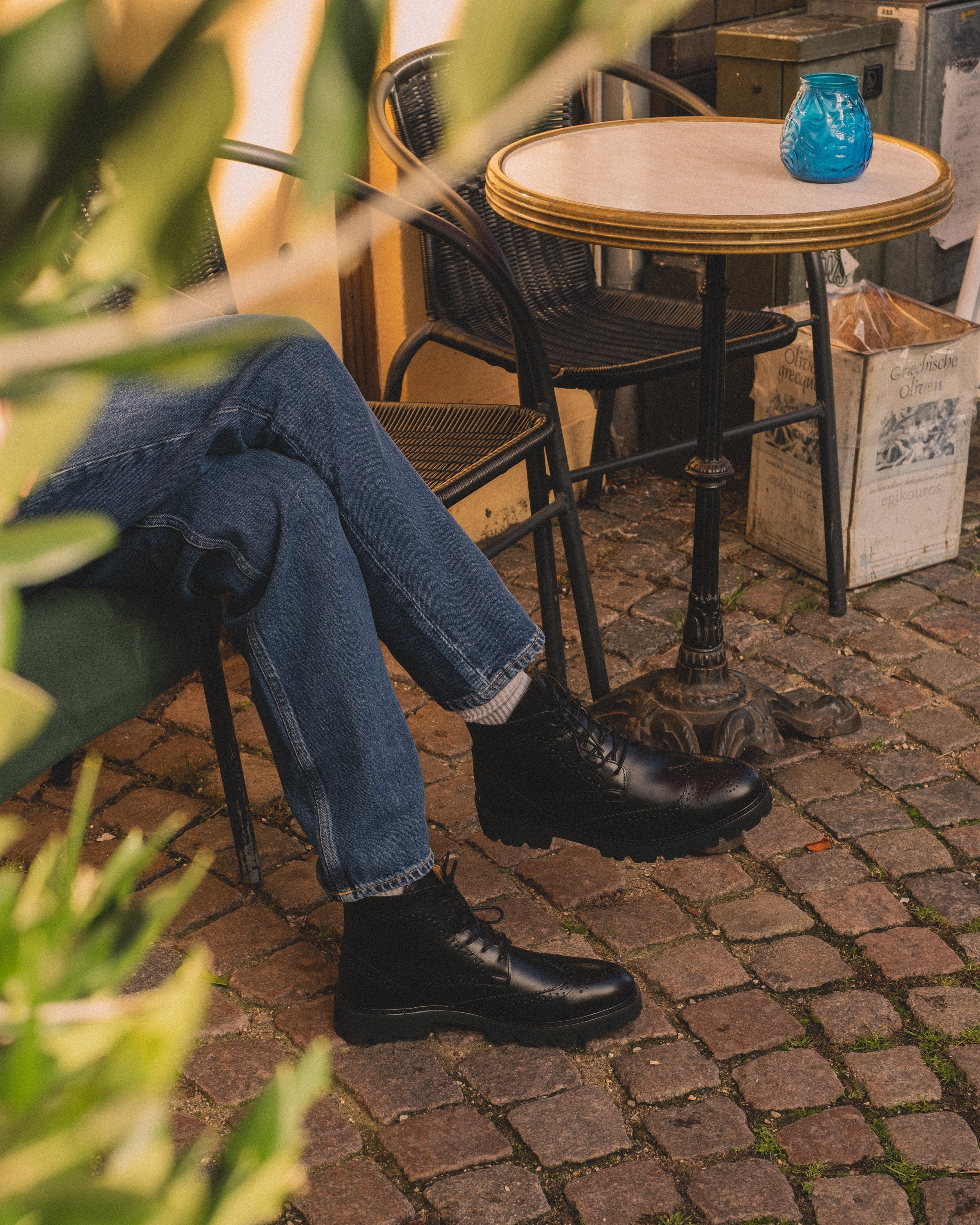 Vores Lightweight Brogue Combat Boot er inspireret af de klassiske militærstøvler men med et nutidigt tvist. De er meget alsidige i udtrykket og passer til mange forskellige looks. Hvad enten du tager dine slidte stonewashed jeans på eller et par klassiske dress pants, så vil støvlerne give dig noget kant. Vi har tilføjet en chunky letvægts EVA sål, som gør den let og komfortabel, men samtidig fastholder det rå look.